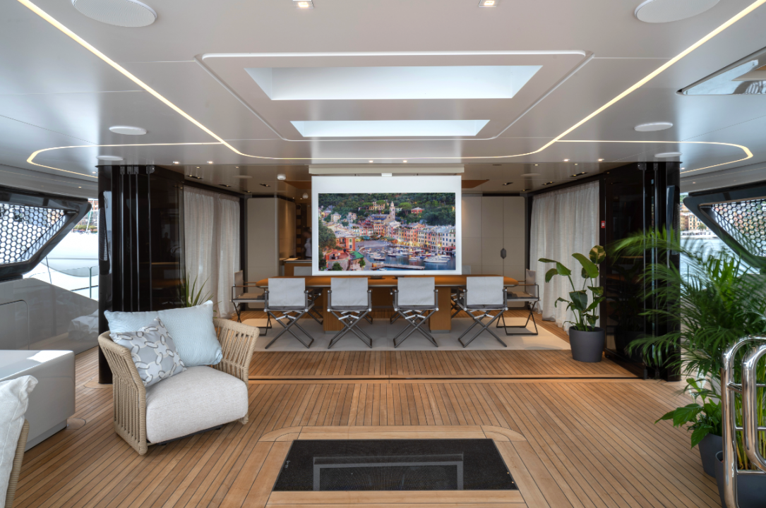 Here is a special yacht that deserved a special outfit. And this is where Videoworks came in, with all the expertise it can offer, to create a centralised system for audio and video enjoyment on board. Nothing exceptional so far - except that everything is concentrated in a single technical UD (Upper Deck) space, where the two main racks are located. Each rack is about two metres in height. This solution ensures that all areas are as equipment-free as possible and that, consequently, any maintenance operations are less invasive, as they are concentrated in the technical room.