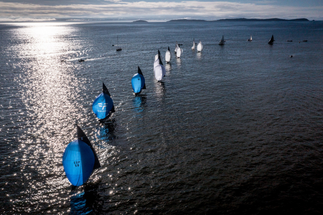 Finally, shortly after 13:15h, the situation improved, and the committee were able to start racing on the racecourse located in front of Sanxenxo. The westerly wind, of about seven knots, enabled two races to be held and the discard option to be included for the classification still be decided.