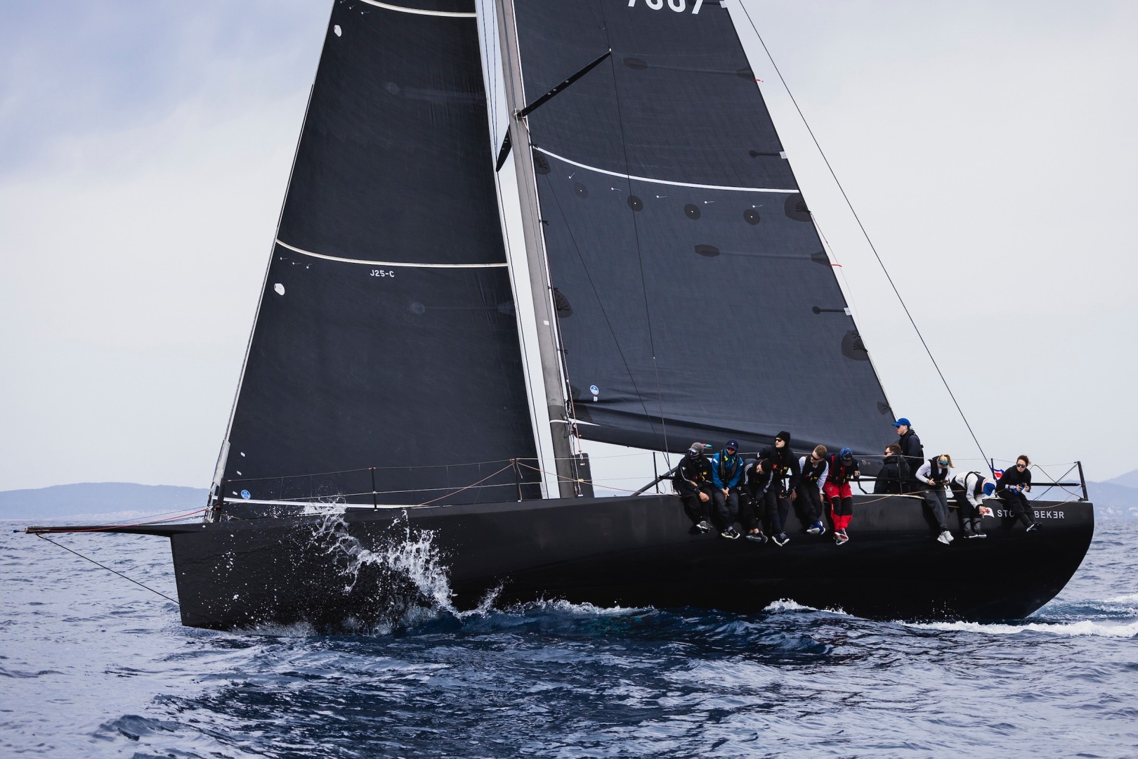 Torben Muhlbach’s “Stoertebeker” was the fastest boat over the start line in the Bay of Palma and was able to escape from the rest of the fleet at the first compulsory mark in Cabrera.