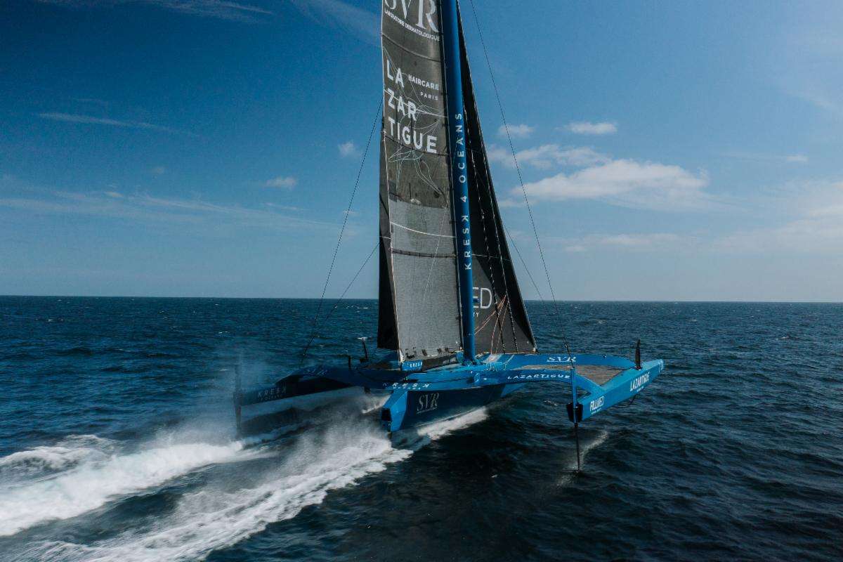 The Ultim’s 2023 winner and outright race record holder returns. Under François Gabart, Tom Laperche and their team, SVR-Lazartigue was first into Cherbourg two years ago setting a new record time of 1 day 8 hours 38 minutes 27 seconds, almost a day ahead of the first monohull. However their average speed of 21.3 knots was still less than the 21.7 knots that her rival Maxi Edmond de Rothschild managed into Plymouth in 2019, (a historic finish that saw Gabart’s MACIF pipped to the post by less than a minute) and substantially less than the 27.2 knots Gabart managed when he had set a non-stop singlehanded round the world record in 2017.