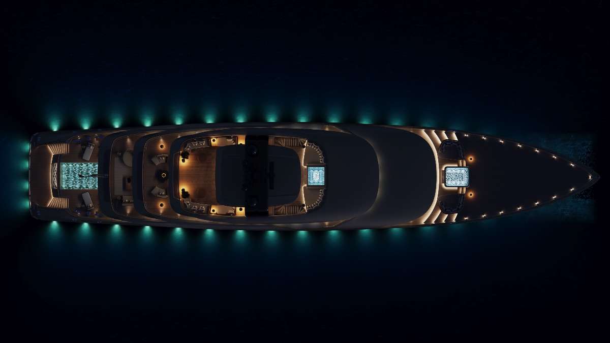 Although the hull measures 65m, it will offer the volumes and amenities more usually associated with an 80m yacht. These include a prominent owner’s suite with a private lounge offering panoramic ocean views. The owner’s stateroom itself benefits from floor-to-ceiling glass for a profound connection to the surrounding seascape. There are four further guest cabins and a large main deck lounge, which provides a stylish and inviting space for relaxation and social gatherings.