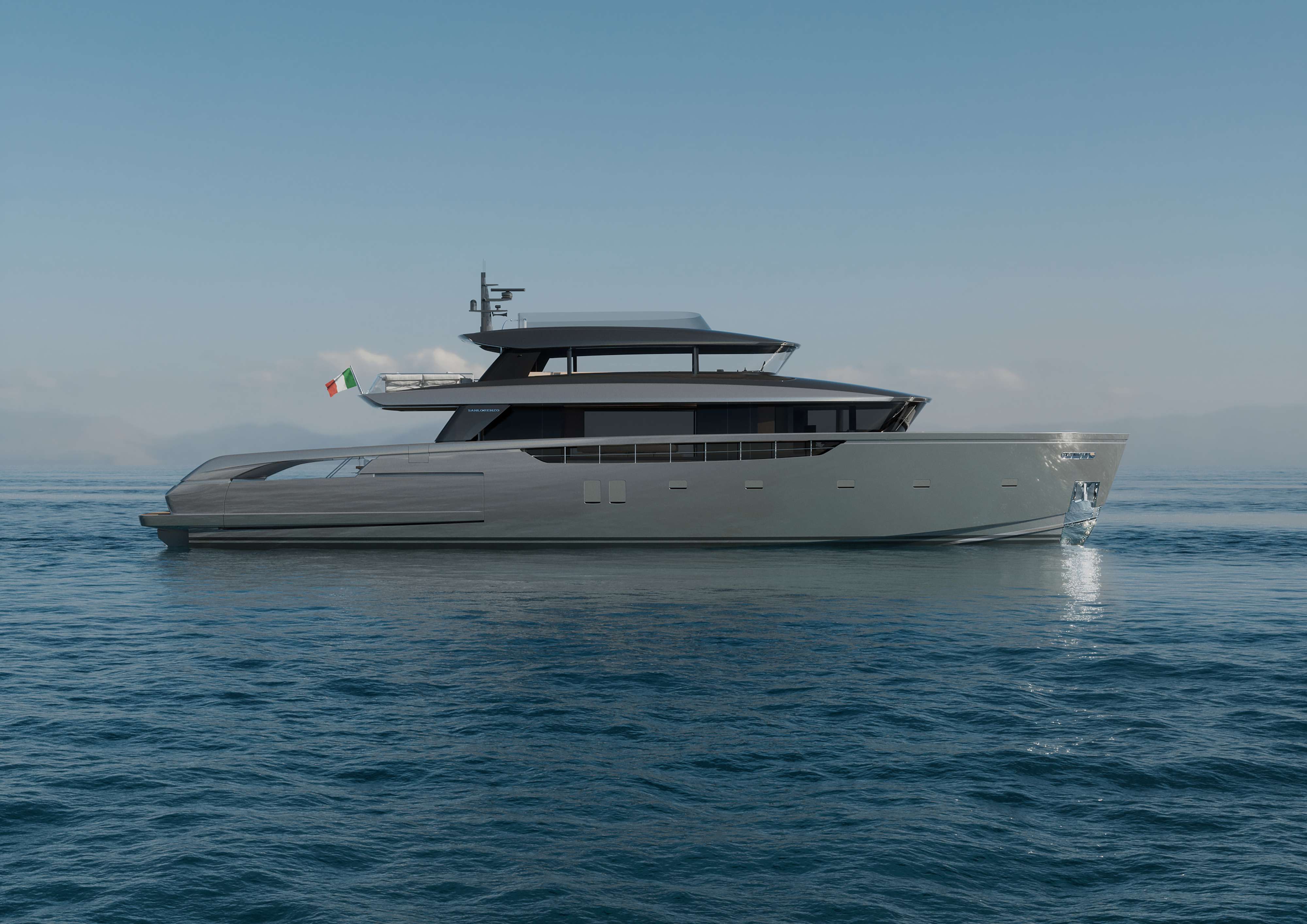 A synthesis between the classic motoryacht with flying bridge and the explorer range, the SX line is designed to efficiently and harmoniously integrate style, adaptability and functionality, transforming sailing and life on board into a new and engaging experience. Consistent with the stylistic features of the range, the SX120 is distinguished by its sleek, sporty lines and its wide on-board spaces, in constant dialogue with the external environment. With its 270 GT tonnage and 37 meters in length, SX120 is the largest vessel built according to the brand revolutionary SX concept.