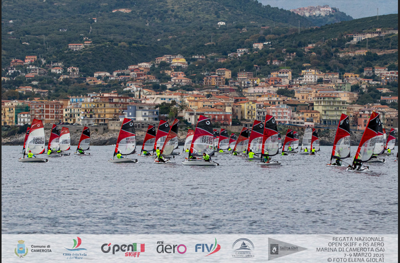 Dopo l’assenza di vento che ha caratterizzato la giornata inaugurale di venerdì, oggi Eolo ha finalmente sorriso ai partecipanti e agli organizzatori di Cilento a Vela della 1ª Regata Nazionale OpenSkiff e RS Aero. Il vento, con raffiche fino a 9 nodi, ha permesso lo svolgimento di quattro regate per la classe OpenSkiff, suddivisa nelle categorie Under 13 e Under 17, e di tre regate per la classe RS Aero. L’evento, che ha richiamato quasi 130 atleti provenienti da tutta Italia, dal Lago di Garda alla Sardegna, passando per l’Adriatico e il Tirreno, ha colorato la costa di Marina di Camerota, che si è riempita di vele. Numerosi i circoli e i regatanti alla loro prima esperienza in una competizione nazionale, a testimonianza della crescente popolarità di queste classi veliche, che danno priorità al divertimento e alla condivisione di amicizie e passione per la vela.