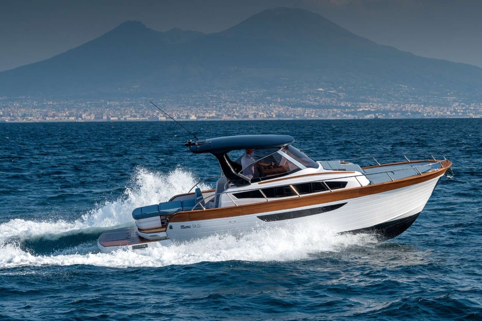 Il nuovo Libeccio 9.5 Cabin offre un pozzetto ben riparato grazie a un tettuccio rigido che dal parabrezza copre interamente la postazione di guida e, come tutti i modelli della linea Libeccio, è disegnato e progettato in 3D, realizzato mediante frese a CN a 7 assi e con scafo in VTR con il processo di infusione sottovuoto e finiture in legno di teak lavorato a mano.