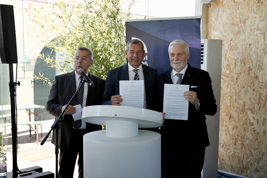Ebenfalls anwesend waren Lamberto Tacoli als Vertreter von The Italian Sea Group sowie die Führung von Confindustria Nautica: Präsident Piero Formenti und die Vizepräsidenten Marco Monsurrò und Vincenzo Poerio, die den strategischen Wert der Zusammenarbeit zwischen Regionen und Bootsmessen hervorhoben.