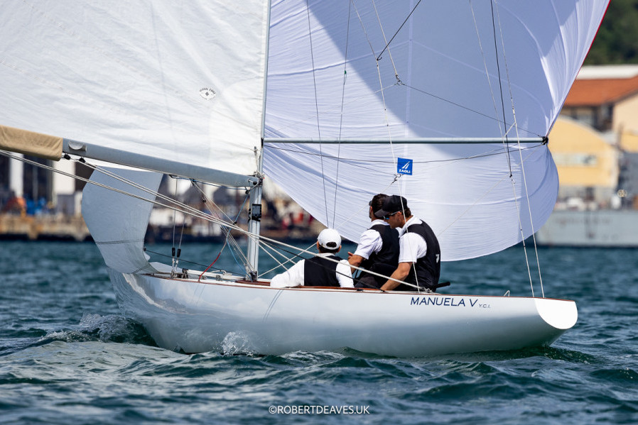 The 2025 Enoshima Trophy is taking place in La Spezia, Italy, with seven classic 5.5 Metres taking part dating from 1953 to 1967. Rabicano, helmed by Arancia Malaspina, picked up a 1,2 and leads after two races. Manuela V, helmed by Guido Tommasi, had a 3,1 while Grifone, helmed by Benedetta Di Salle, is third with a 2, 3.