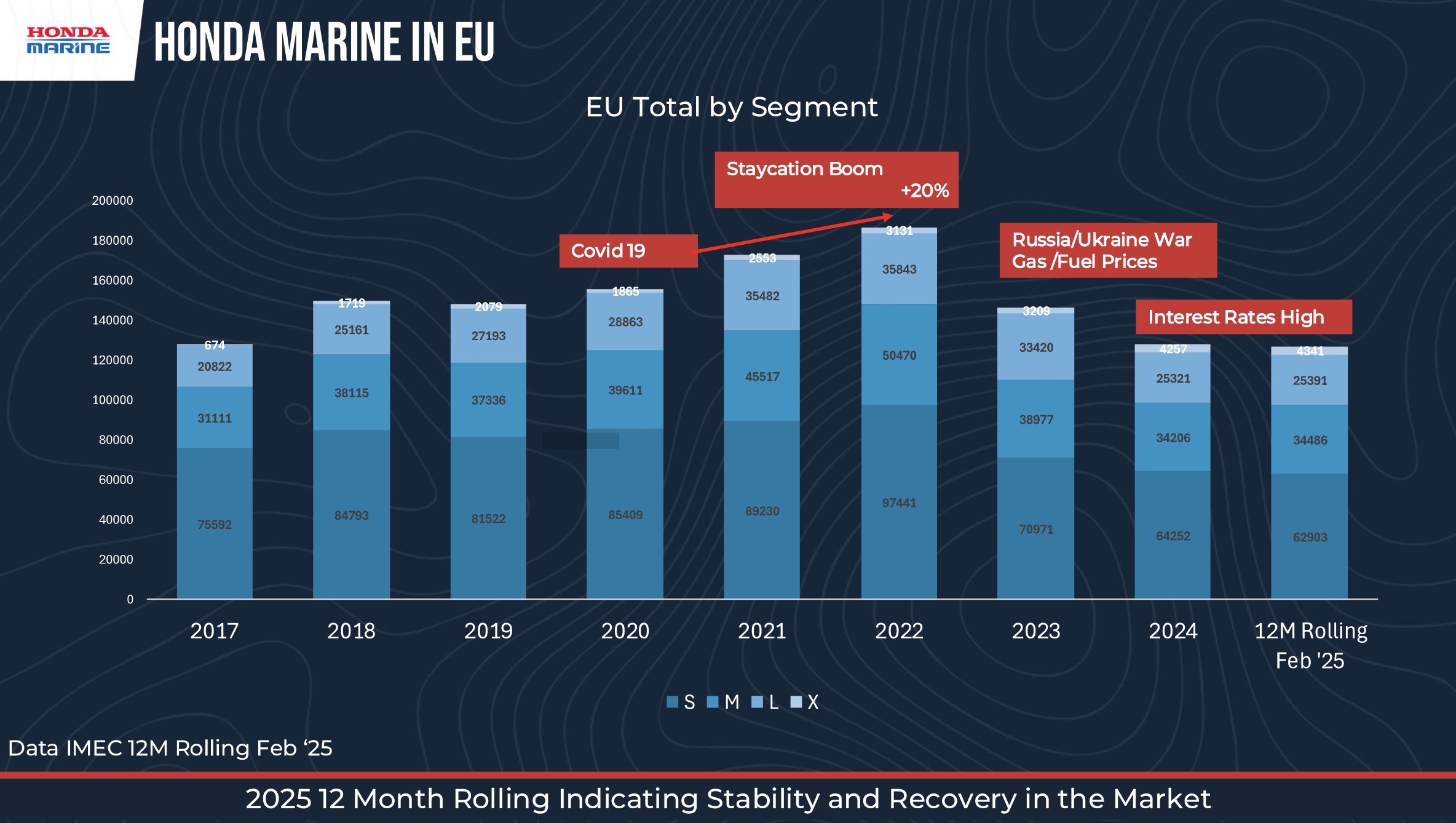 The European outboard market has stabilized at around 125,000 units per year, following the Covid boom and the subsequent impact of fuel costs and rising interest rates. While small and mid-range segments are slowing, the extra-large segment (over 300 HP) is booming: from 3,000 units during the pandemic to over 4,300 units as of February 2025.