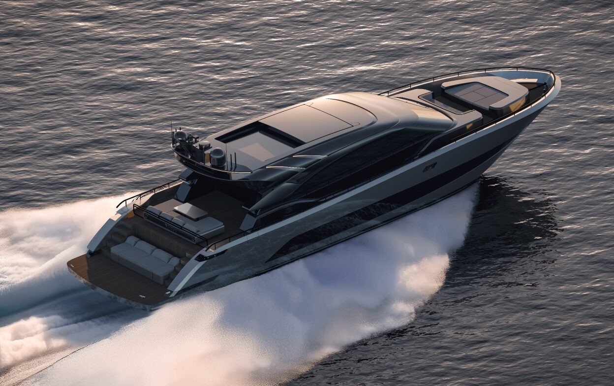 The Cruise version is distinguished by its flybridge, exceptionally large for the type and size of yacht, ideal for fully enjoying life in the open air. Access is provided by two carbon-fibre exterior staircases located in the cockpit. From an aesthetic standpoint, the difference between the two configurations is immediately recognisable: the Cruise features a reverse-raked windshield, while the Sport has a wraparound windshield with a classic profile. Furthermore, the Sport forgoes the flybridge in favour of a sliding roof, perfectly integrated into the superstructure’s aerodynamic profile.