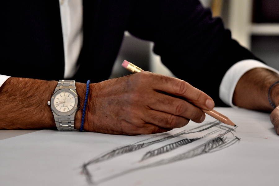 The creative process inside Officina Italiana Design always starts from the free gesture of hand drawing. “With the pencil I draw the mother-line, the one that already contains the direction of the boat,” explains Mauro Micheli. “It is an almost emotional moment. If it doesn’t work there, it will not work in 3D either.”