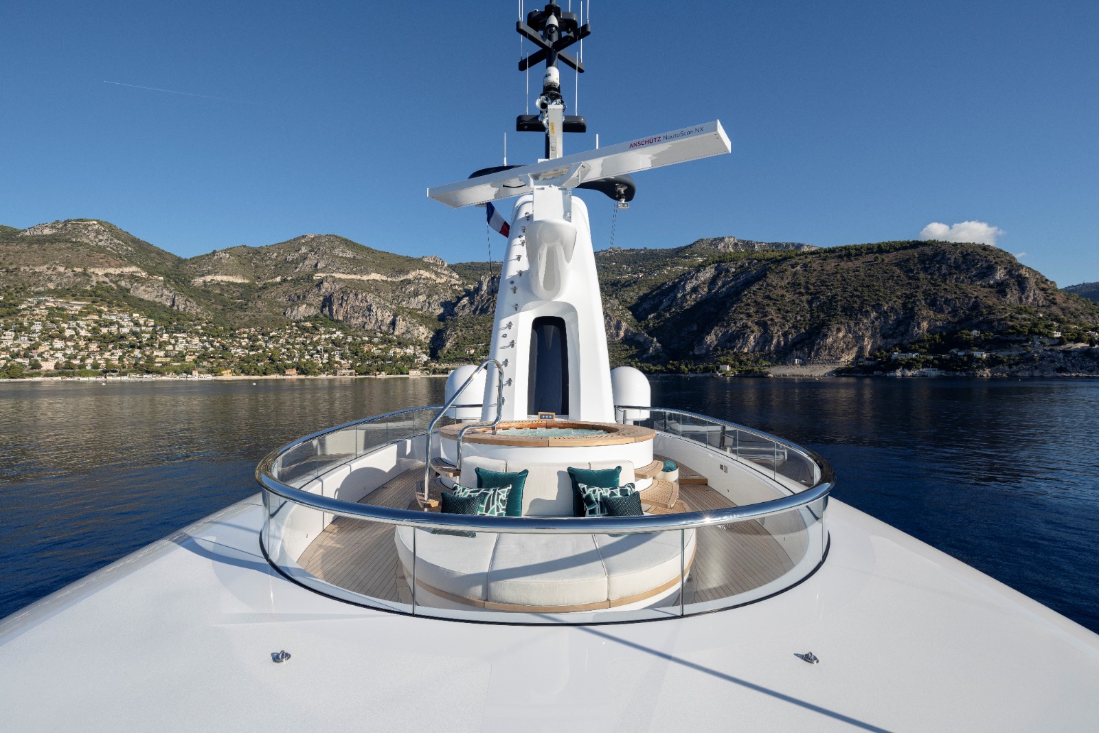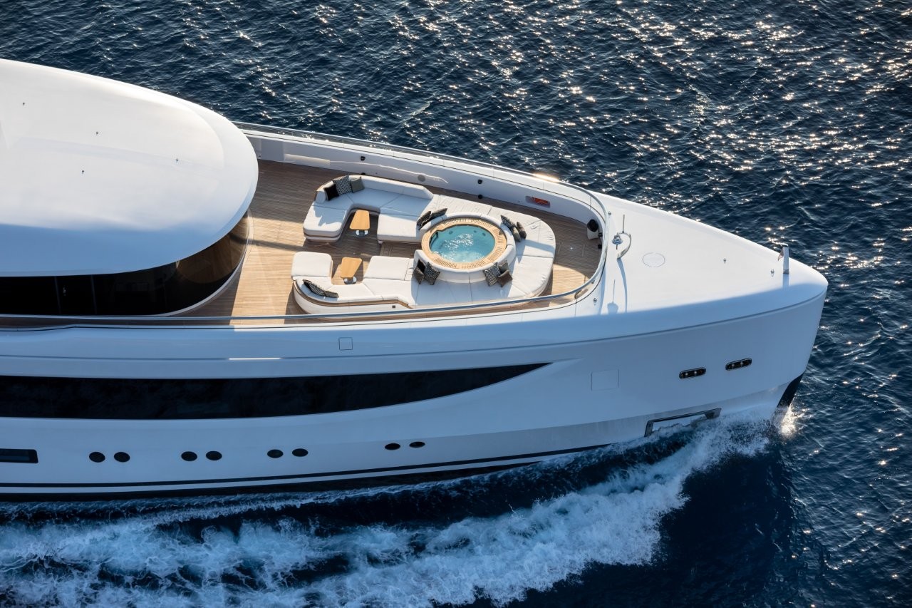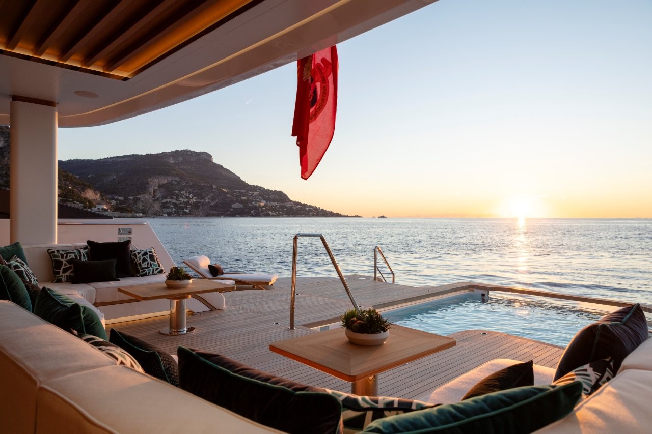In addition to the Oasis Deck® infinity pool, the yacht features a spa pool on the Observation Deck and a third pool forward on the owner’s deck—40 centimeters deep and designed with a refined waterfall effect.
