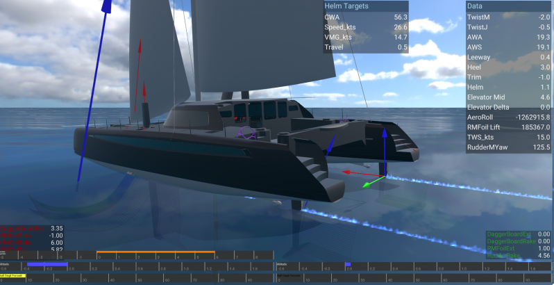 The foil control system interfaces with SumToZero’s “Blogger” autopilot software, which uses the same physics engine as Gomboc, the dynamic VPP simulator we used during the yacht’s design and performance development. That continuity from simulation to real-world control creates an unusually tight feedback loop between virtual testing and the boat’s actual on-the-water behaviour.