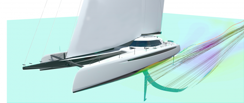 Originally, the call was to shoot for a 50 per cent lift fraction - enough to reduce wetted surface and improve performance without overcomplicating the platform. But thanks to the precision and fidelity of our design toolbox, we quickly discovered that a 100 per cent lift fraction was not only possible, but viable on a cruisingperformance catamaran platform. By carefully refining foil geometries through simulation, we unlocked full-foiling potential in a yacht built also for cruising.