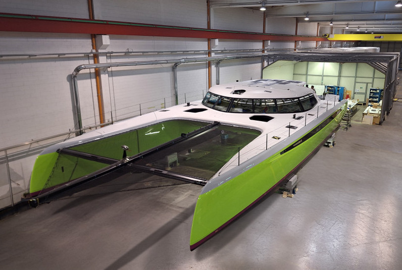 By selecting intermediate modulus pre-preg carbon fibre for the primary structures and employing advanced vacuum techniques to achieve high fibre-to-resin ratios with optimal curing conditions, we ensured that the hulls, beams and foil structures can withstand both the steady loads of cruising and the extreme forces generated at speed. Note that the light ship weight – approximately 19 tons – is measured without the RMFoils deployed, while the vessel weighs around 22.5 tons in full race mode. The PB72 remains lean yet exceptionally robust, ready to push the limits.