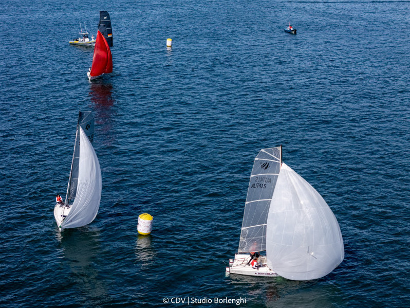 The third race started around 1.00pm with wind stabilised at 270° and slightly increased intensity, between 7 and 8 knots, compared to the 5-6 previously recorded. The race course remained that of the second race, in waters near the international border off Koper, whilst the first had been sailed closer to shore, towards Muggia. From the first beat, the challenge at the top intensified between RiDeCoSì 2 by Alessandro Maria Rinaldi and the consistently performing Kaster by Sodo Migliori. Following were Ricca d'Este by Paolo Brinati and Pink Team. After an exciting match race, victory went to Kaster, ahead of Ride Così. Third place for Poderosa 2.0, fourth Ricca d'Este, fifth Milù 4, whilst Pink Team finished sixth.