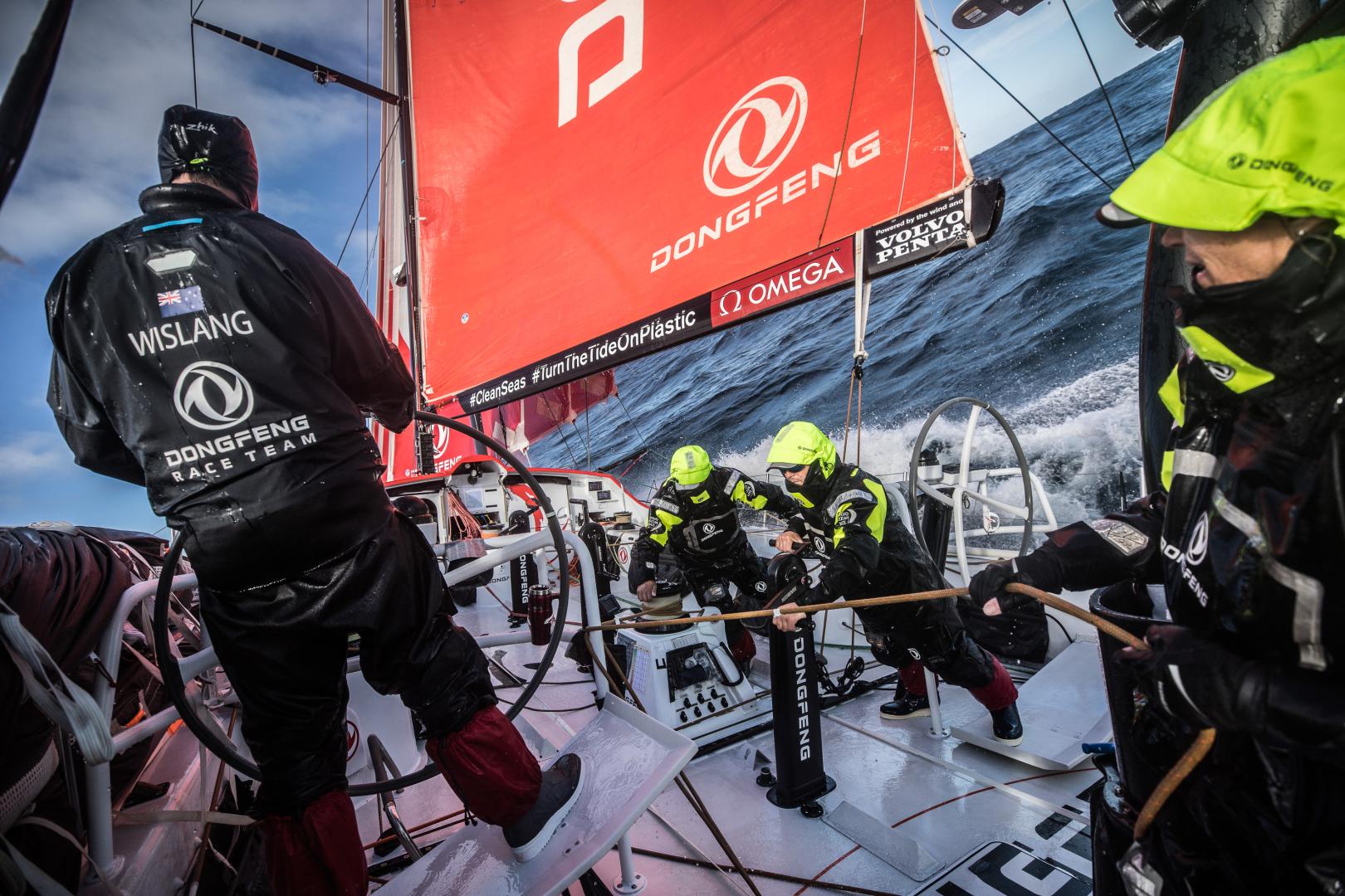 “We have noticed it’s starting to cool down, especially the water,” said Carolijn Brouwer, crew member on Dongfeng Race Team. “We’re heading straight south pretty quickly at about 20 knots. There’s plenty to come ahead – this is just a warm up, or a cool down, however you choose to look at it.”