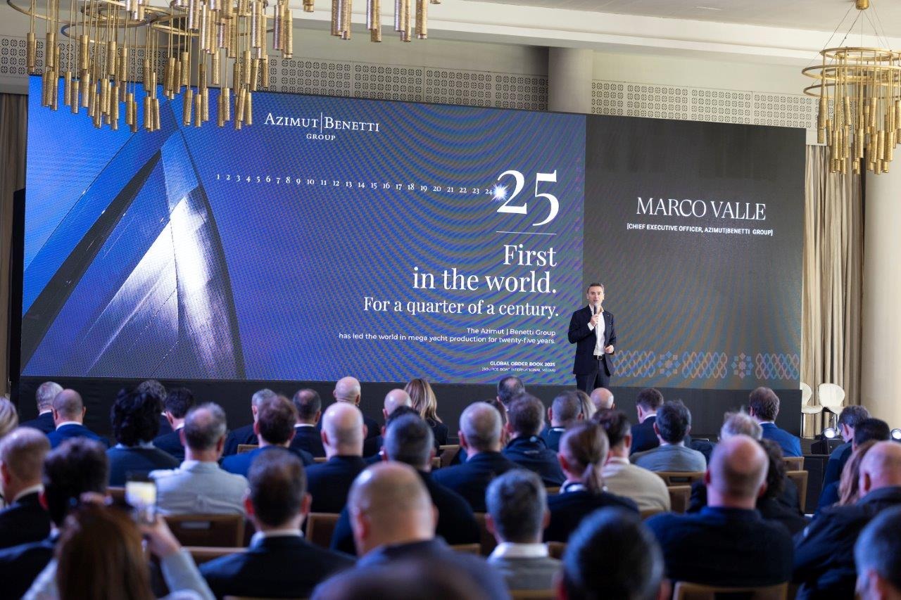 Day 2 was an opportunity for all the participants to get a closer look at Benetti’s vision of the future in terms of innovation and design, sustainability and assistance, with the contribution of the Group’s refit division Lusben. Azimut|Benetti Group CEO Marco Valle opened this plenary session by celebrating, in this particularly significant year for the Shipyard, the Yachtmaster’s first quarter of a century and its profound significance for relationships with stakeholders. He also underscored the Group’s successes by analysing the results of the Global Order Book promoted by BOAT International and published in December 2024.