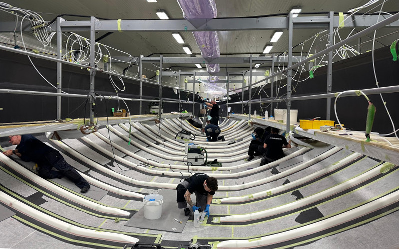‘We built the 100ft V, former Tango, in 2017 (she won the Maxi Regatta in the British Virgin Islands in March 2024), then the 145 Kauris IV in 2020 and a 100ft motoryacht Anadyomena in 2021. In La Spezia we have an entire organisation with a team of people who can deliver performance cruising yachts driven by our composite experience and more than just that. Our people in La Spezia can also develop and install systems and interiors and deliver a complete boat.
