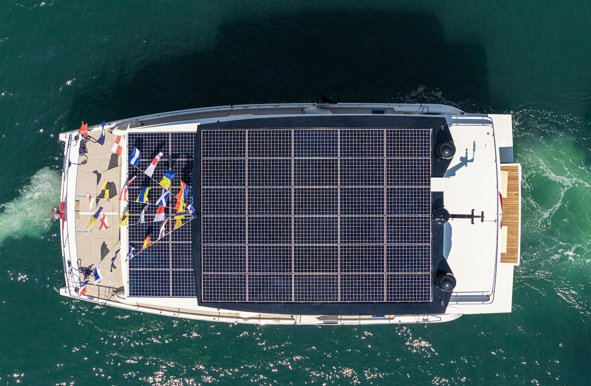 Key features include a 20 kW generator, 123.2 kWh total battery capacity as 100.8 kWh for 48V battery pack, 22.4 kWh for 24V battery pack and a 30 kVA inverter capacity. The yacht is further supported by a solar array of 42 high-efficiency panels, capable of generating up to 16.8 kW under ideal conditions.
