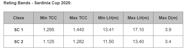 In accordance with the rules for the Sardinia Cup 2026, teams of two boats - meeting the rating band requirements listed below - will compete on behalf of their yacht club. Nationality will be determined by the location of the yacht club represented. Each crew must also field at least one female athlete and one youth sailor under 27 years of age.
