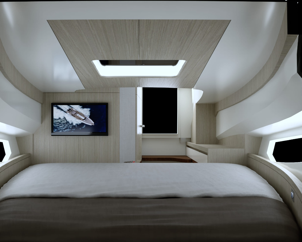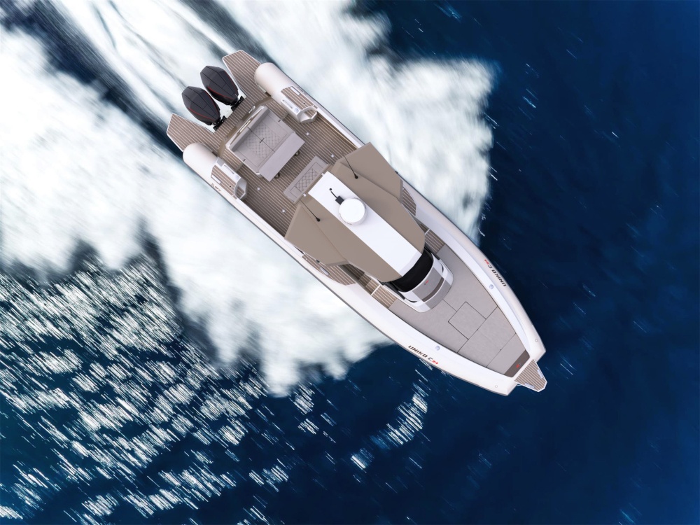 L’UNIKO 34 Cabin è motorizzato con una coppia di fuoribordo per una potenza complessiva compresa tra i 600 e gli 800 cavalli, un modello versatile e ben equipaggiato a conferma della sua vocazione per prestazioni brillanti con uno spazio sotto coperta in grado di accogliere per il weekend o per la piccola crociera