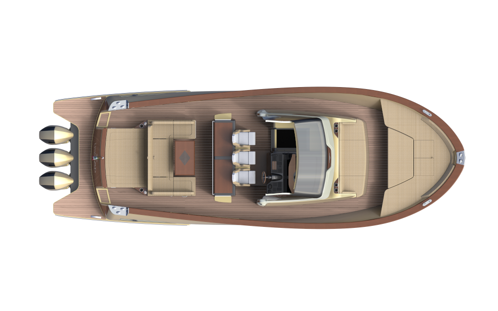 Il progetto nasce dalla collaborazione con Victory Design e Brunello Acampora, adottando la filosofia del Total Design, che integra fin dalle prime fasi progettuali stile, ergonomia, comfort e sicurezza. La barca è caratterizzata da una carena Wide, concepita per garantire stabilità, comfort di navigazione e sicurezza marina.
