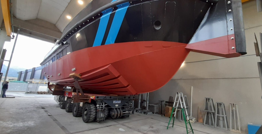 FM - L’architettura navale è di Umberto Tagliavini e West Navaltech. Tagliavini ha creduto in noi sin dagli inizi: fu lui, a 20 giorni dalla fondazione della nostra azienda, a convincere un cliente a darci la prima commessa, a farci realizzare il rimorchiatore da 14 metri di cui sopra.