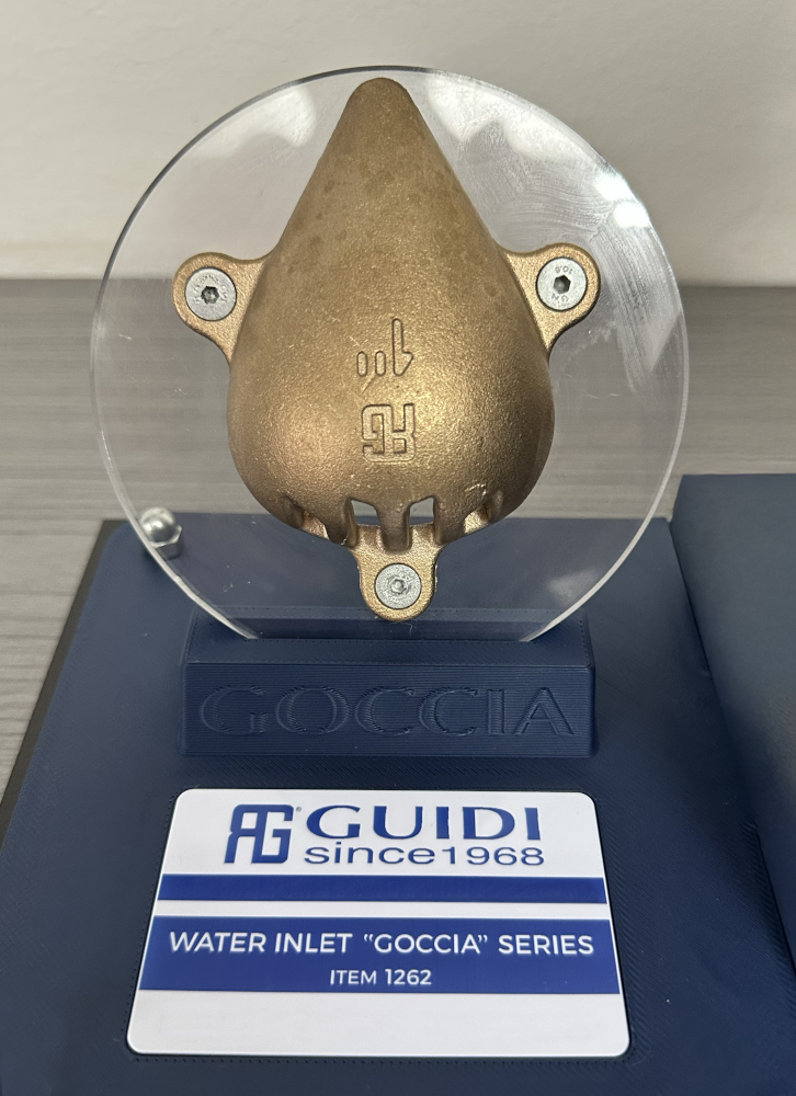 La presa a mare Goccia rappresenta un esempio di "ingegneria bioispirata" per soluzioni tecnologiche che richiamano elementi naturali e presenta un'estetica curata, tipica dell’azienda. I prodotti tecnici Guidi non solo offrono prestazioni elevate, ma sono anche dotati di un design elegante, con linee e finiture raffinate.