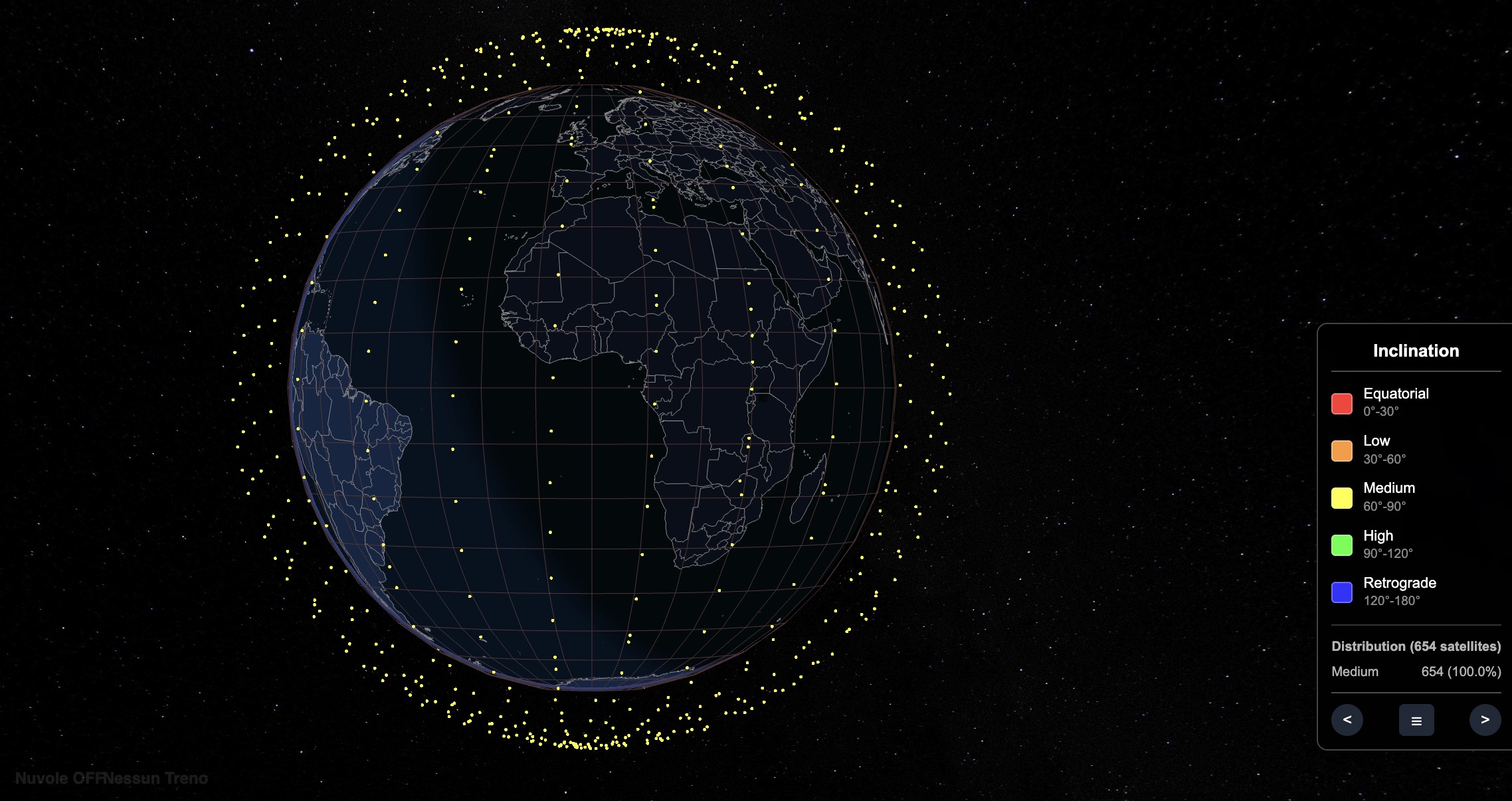 La costellazione di satelliti Starlink attualmente in orbita. Immagine satellitemap.space