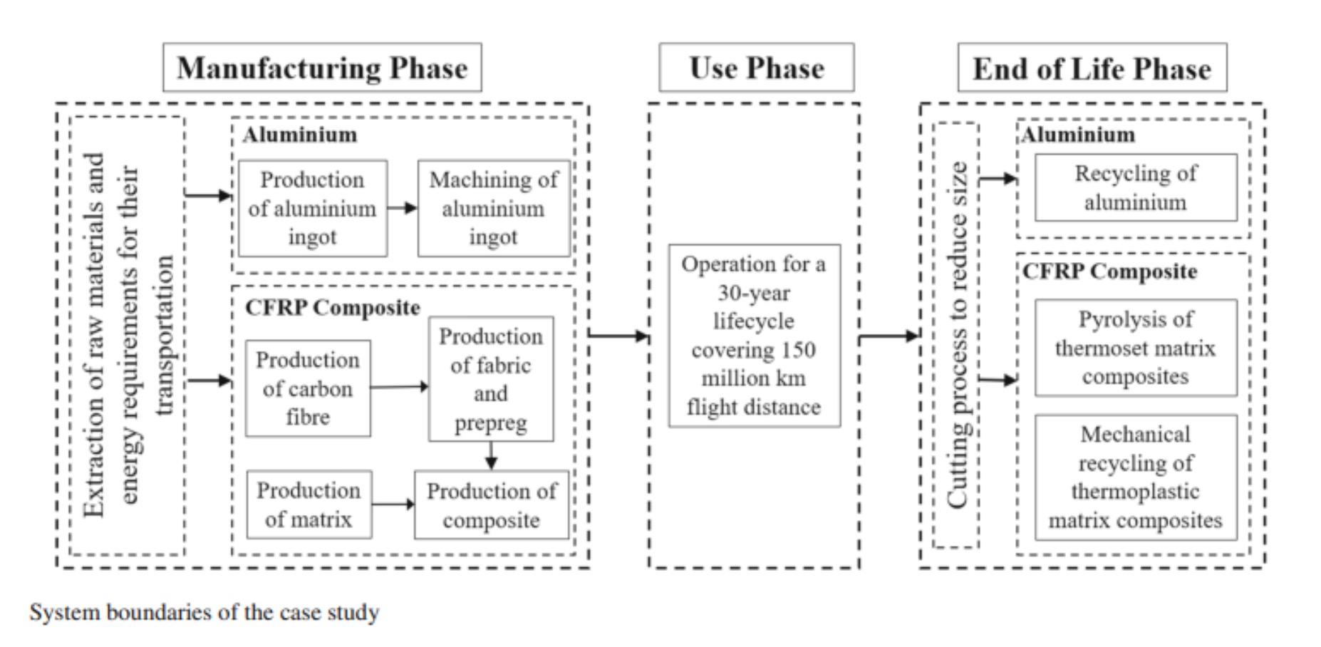 Figura 01: Ciclo di Vita di un Prodotto realizzato in composito e alluminio (derivazione Aeronautica)