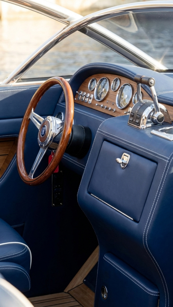 Gli interni adottano un’impostazione sobria con rivestimenti in pelle blu e dettagli in legno, coerenti con un’impronta formale discreta. Il layout di cabina è stato sviluppato prevedendo anche l’integrazione di una propulsione diesel-elettrica opzionale, con l’obiettivo di rendere la piattaforma compatibile con futuri requisiti di silenziosità ed efficienza operativa.