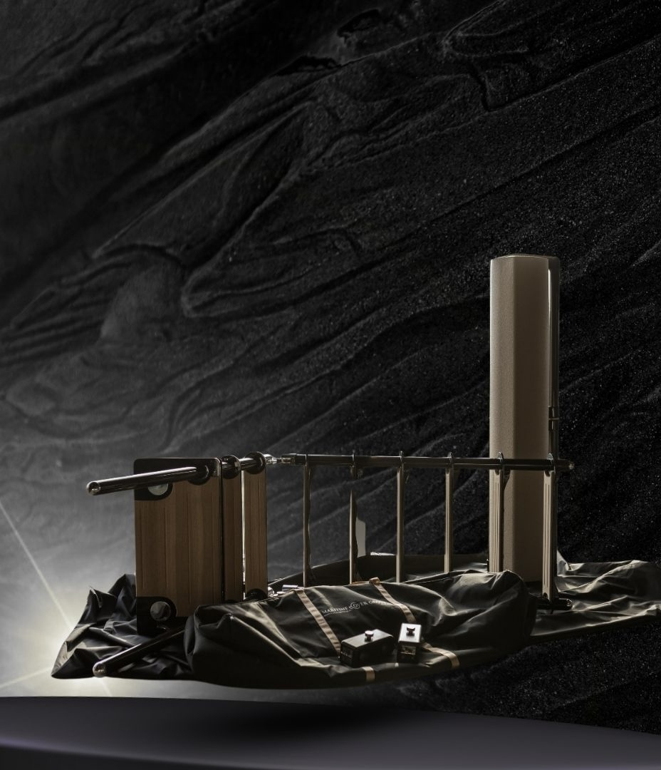 La selezione dei materiali include marmi naturali, legni pregiati, radiche, ottone e tessuti tecnici, combinati in strutture pensate per garantire stabilità, resistenza e qualità percepita nel tempo. Le superfici metalliche sono utilizzate sia come elemento strutturale sia come dettaglio estetico, mentre le parti lapidee vengono impiegate per piani d’appoggio, rivestimenti e componenti decorativi.