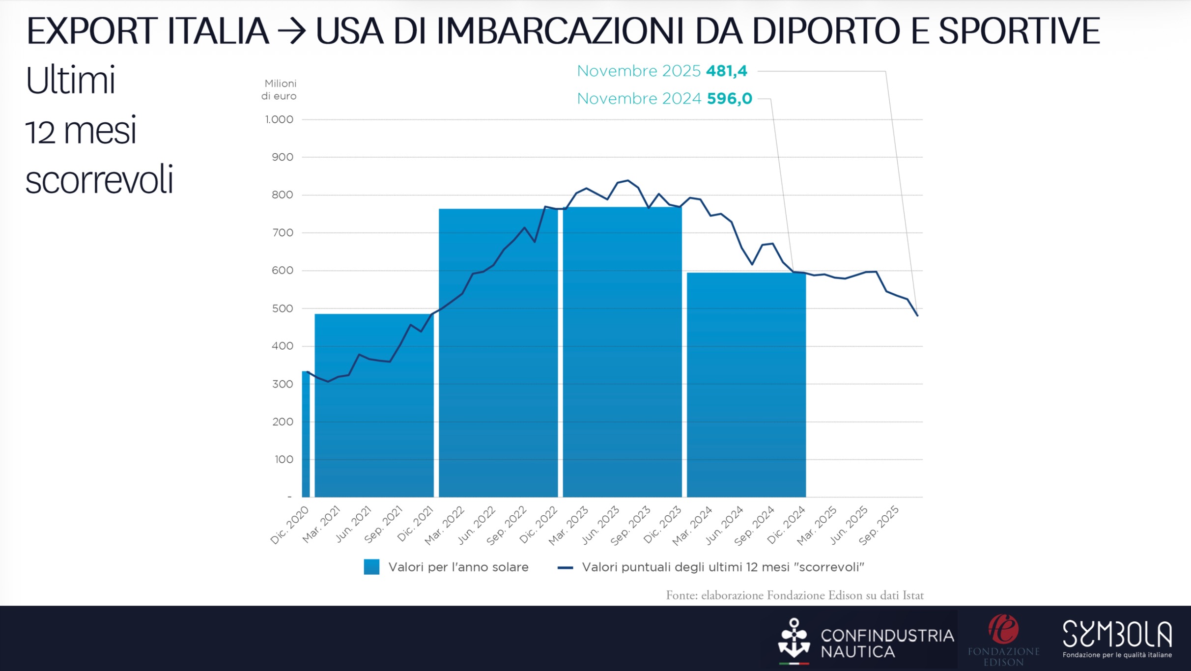 Uno dei mercati più importanti per la nautica italiana resta quello statunitense. Le incertezze legate ai possibili dazi e alle politiche commerciali americane hanno contribuito a determinare una flessione delle esportazioni verso gli Stati Uniti.