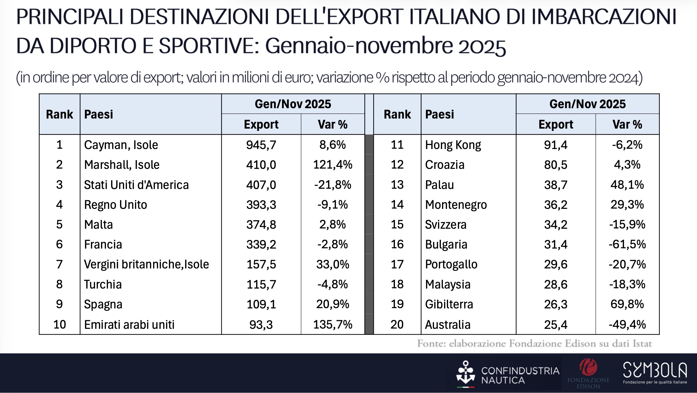 Il settore sta tuttavia entrando in una fase di progressiva stabilizzazione: i grandi yacht continuano a sostenere il mercato e a trainare le esportazioni, mentre la nautica di dimensioni più contenute attraversa una fase più complessa.