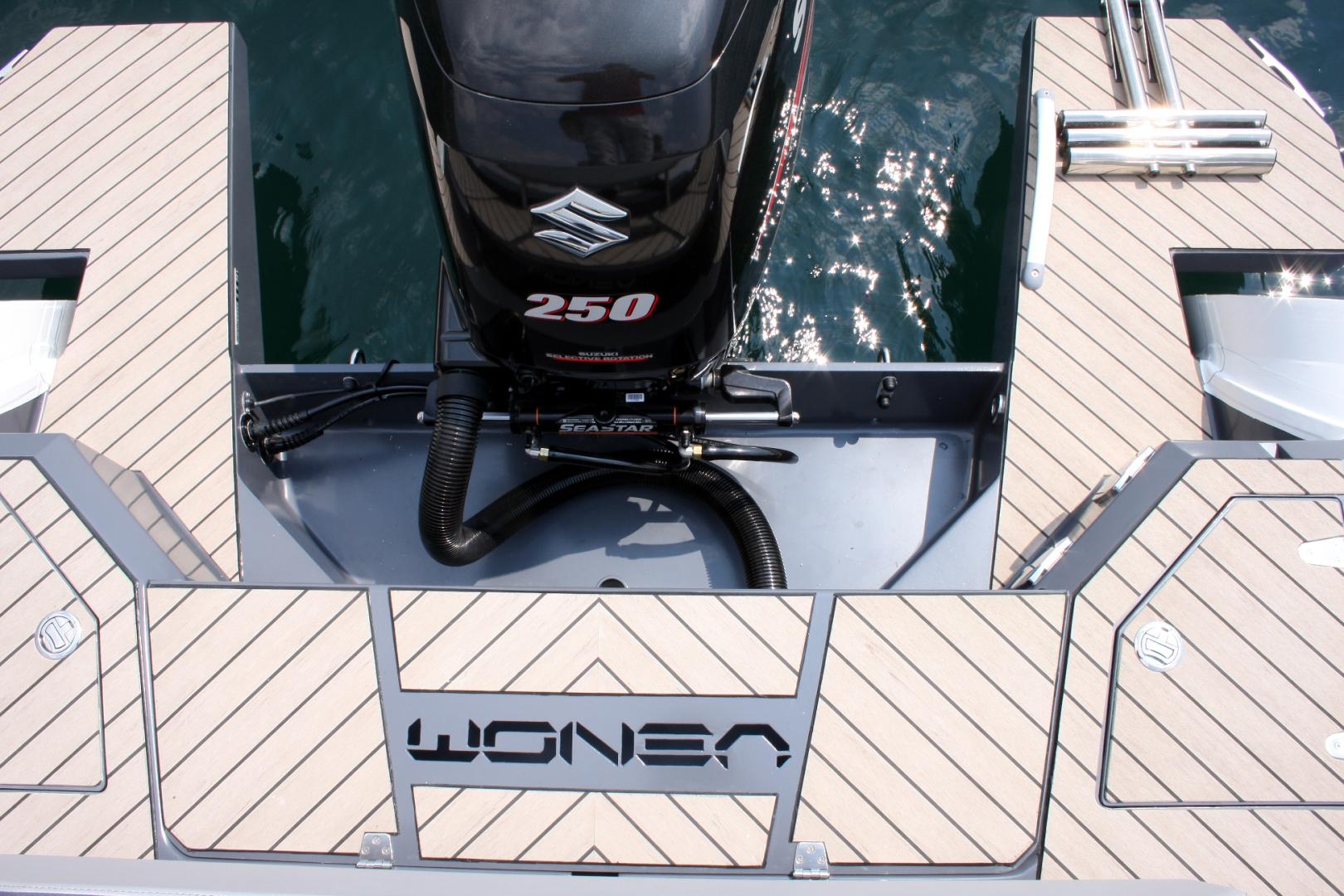Tale scelta è stata il frutto di analisi precise, dalle quali è scaturita la volontà di adottare un motore capace di incontrare le particolarità del mezzo e di enfatizzarne le doti. Per questo il Suzuki DF250AP si rivela un valido alleato, che con i suoi 250 HP erogati da un propulsore a 6 cilindri disposti a V a 55° è un fuoribordo tecnologicamente avanzato e in grado di garantire le doti di affidabilità tipiche dei motori Suzuki, a fronte di consumi contenuti e un’erogazione di coppia sempre pronta. Efficienza ottenuta con accorgimenti d’avanguardia e in alcuni casi esclusivi di Suzuki, a cominciare dall’adozione di due bancate disposte a V a 55° anziché i tipici 60°, da cui derivano pesi e ingombri contenuti nonostante una cilindrata totale di 4.028 cm3.