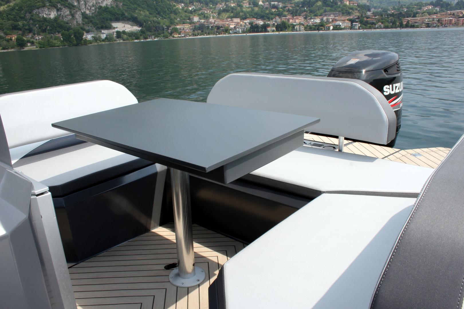 In coperta l’abitabilità è ottenuta con elementi modulari molto semplici da gestire durante le escursioni, che permettono di ottenere aree prendisole di grandi dimensioni, una dinette comoda, sedute sicure durante la navigazione, anche alle velocità più sostenute, e confort.