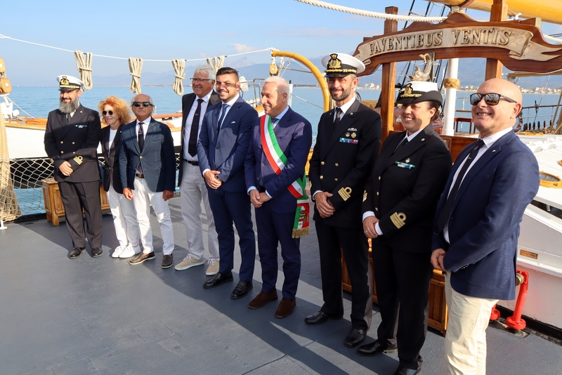 La presenza alla fonda davanti alle spiagge di Viareggio della nave goletta Palinuro della Marina Militare è stato un evento indimenticabile. Questo veliero scuola costruito in acciaio chiodato in Francia nel 1934, dallo scorso settembre al comando del Capitano di Fregata Gian Luca Montella, dagli anni Cinquanta viene adibito a campagne di istruzione marinaresca a favore degli allievi nocchieri. Già immortalato su tutte le locandine con l’acquerello dell’artista Emanuela Tenti, anche autrice di un libro celebrativo sul ventennale, nella giornata di mercoledì 15 ottobre ha accolto a bordo il Sindaco Giorgio Del Ghingaro, l’Assessore allo Sport Rodolfo Salemi, il comandante Sabrina Di Cuio e i massimi rappresentanti delle associazioni Vele Storiche Viareggio, AIVE e Club Nautico Versilia per l’issata a riva dei tre rispettivi guidoni. Sono seguite le visite a bordo da parte della cittadinanza e la spettacolare illuminazione notturna col tricolore. Il giorno successivo un’emozionante carosello di vele storiche ha salutato la nave, ripartita alla volta di Napoli e della Sicilia, dopo avere stretto un profondo legame col territorio e i sodalizi che promuovono la conservazione del patrimonio navale.