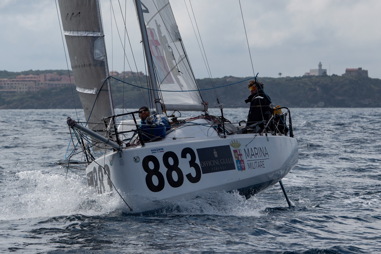 Il Mini 650 Pegaso Marina Militare, la barca più piccola della flotta, al gate di Porto Cervo in ottima posizione