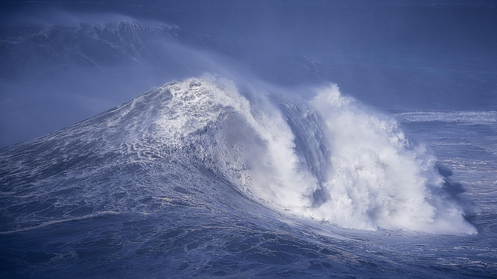 Neben kommerziellen Aufnahmen für Werbung und Verlage widmet sich Kaufmann auch eigenen Projekten. „Glacier“ ist eine Herzensangelegenheit für den Outdoor-Chronist. Von den Wellenbergen in die Schneeberge – Wasser in gefrorener Form übt eine spezielle Faszination aus, gepaart mit der felsigen Monumentalarchitektur der Natur. Doch diese Motive bekommt man nicht einfach so vor die Linse. Allein oder mit einem Bergführer macht sich Jürg auf die Suche nach zeitlosen Bergansichten und dokumentiert gleichzeitig die Zerbrechlichkeit einstiger mächtiger Gletschergebiete. Kaufmann ist auch zur Stelle, wenn sich die Natur von ihrer gewaltigen Seite zeigt. Kündigt sich ein Atlantiksturm an, trifft man den Bilderjäger in Nazaré, wo sich der Meeresboden gegen die portugiesische Küste hin sich in einen verengenden Canyon vertieft. Dort, im Eldorado der Extremsurfer, brechen titanische Wellenmonster mit brachialer Wucht – ein Naturspektakel so richtig nach dem Geschmack von JK.