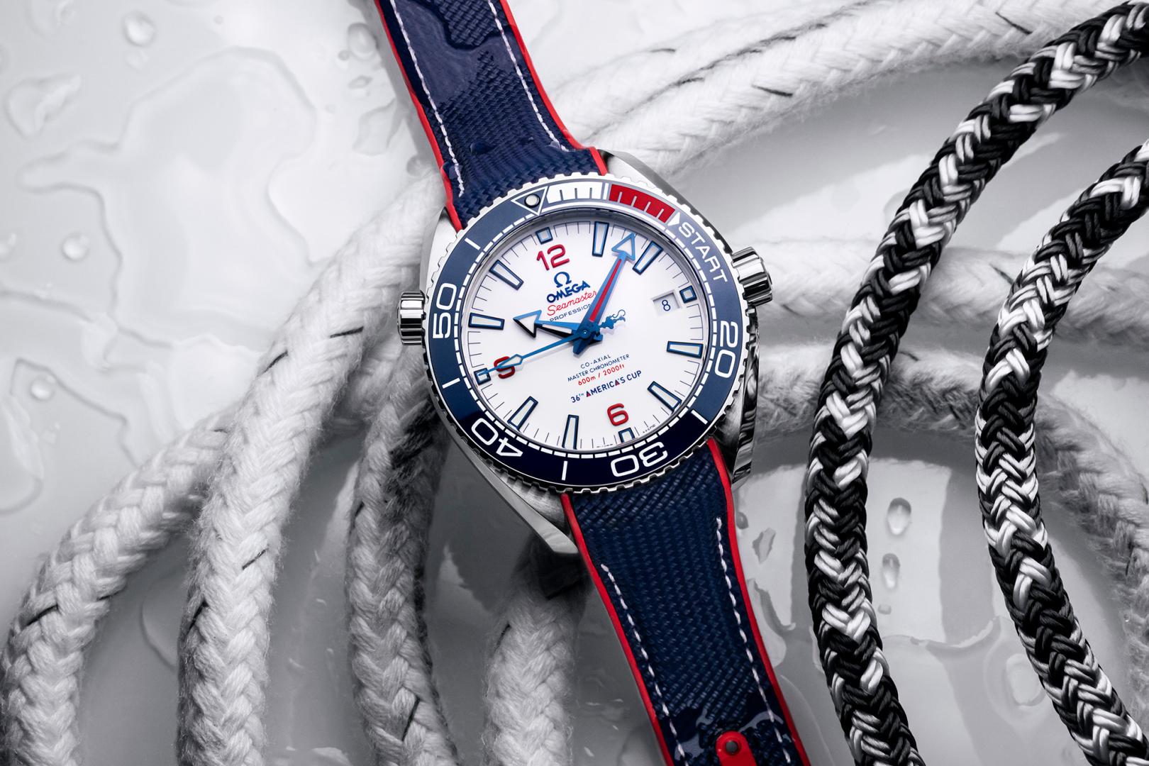 Gleichzeitig mit dieser Bekanntgabe präsentiert der Hersteller auch die brandneue OMEGA Seamaster Planet Ocean 36th America’s Cup Edition. Der mit einem strukturierten Kautschukarmband ausgestattete, 43,50 mm grosse Zeitmesser aus Edelstahl wird in einer Stückzahl von lediglich 2021 Exemplaren gefertigt. Am auffälligsten ist die blaue Keramik- Taucherlünette mit einem für Rennzwecke bestimmten 5-Minuten-Countdown aus weisser und roter Flüssigkeramik.