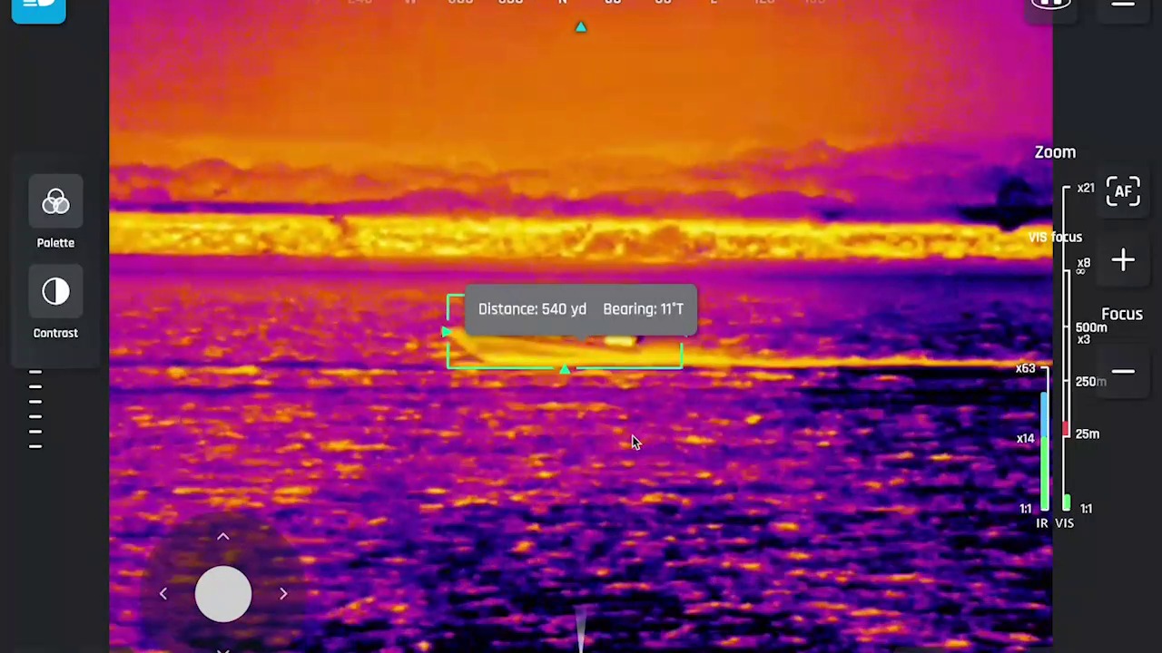 The M560 uses a high-sensitivity, mid-wave IR thermal sensor and 14x optical zoom lens to further enhance detection capabilities, image quality and deliver a long-range performance. Both cameras offer Color Thermal Vision (CTV), combining the color visual elements from the visible camera to enhance and provide context to the thermal scene. With CTV, navigation marks appear in their natural red and green, while vessels and shoreline features are easier to identify with color overlays.
