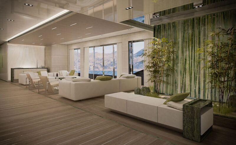 The Yard and yacht designer gave particular attention to the Owner's privacy developing a very private and direct access to the sky-lounge business meeting room from the exterior tender arrival position. The Owner will use the yacht both for leisure and business and the layout has taking this into consideration.