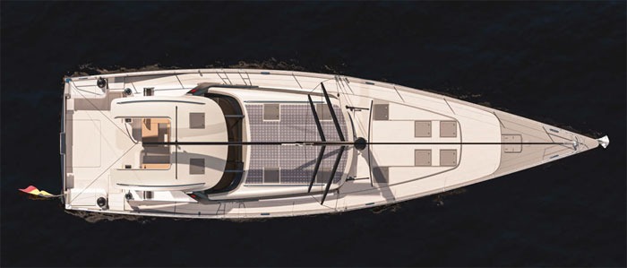 ‘I started thinking “Let’s integrate the bowsprit into the hull.” First, you are protected by the pulpit when you work at the bow. Second, the loads are much more directly transferred from the Code Zero into the hull. Third, you get a finer bow, which is good for speed and for comfort as there’s no slamming. So, we said “Let’s do it.” We were at 65ft at that point but, by interior volume, we were – and still are – at 60ft.