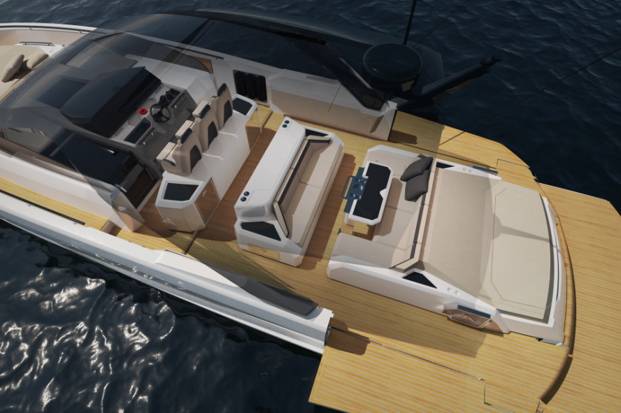 With an overall length of 15.90 meters, a beam of 4.61 meters and a shallow draft of just 1.35 meters, the 577 Coupé offers outstanding versatility, combining dynamic navigation with easy access to shallow waters.