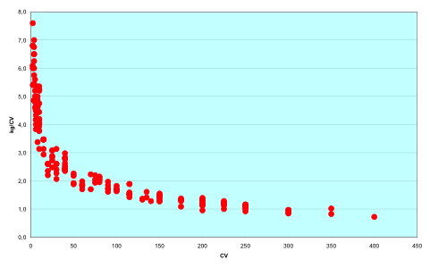 Se però andiamo ad esaminare tutta la gamma di potenze disponibile sul mercato, scopriamo che il rapporto peso/potenza diminuisce all’accrescersi della potenza, come è evidente dal grafico allegato. Passiamo infatti da circa 7kg/CV dei fuoribordo da 3 o 4 CV a poco meno di 1, per i motori da 300 o 400 CV: la potenza cioè non cresce linearmente con il peso, o, viceversa, per avere potenza doppia non occorre avere peso doppio. Altrimenti succederebbe che un motore da 300CV dovrebbe pesare, se assumiamo il parametro del 4CV, 2100 kg, cioè più di due tonnellate. Oppure, assumendo il parametro del 300 CV, un motore da 3 CV dovrebbe pesare solo 3 kg.