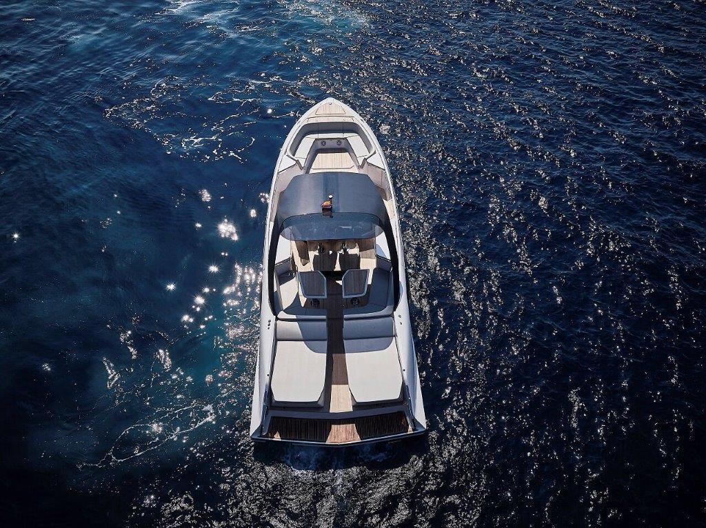 Le linee del Frauscher 1414 Demon Air, di nuovo firmate dallo Studio Kiska, riassumono tutti gli stilemi tipici del marchio: la prua dritta e verticale, le murate con l’intaglio “a forma di Z” e il parabrezza privo di cornice. Grazie alla posizione centrale ed arretrata della timoneria, la variante Air offre più spazio e comfort rispetto ai precedenti modelli Frauscher. Sul ponte, a prua, è presente un comodo salotto che all’occorrenza si trasforma in zona prendisole, mentre alle spalle della console sono presenti: un mobile bar, un ulteriore comodo salotto, un ampio prendisole e una spaziosa piattaforma da bagno. Nella cabina, il cui accesso è adiacente la console, è collocata una sala da bagno alta ben 195 cm, completa di doccia e servizi, e trovano comunque spazio quattro comodi posti letto in due zone separate. Attributi che fanno di 1414 Demon Air una barca di innegabile eleganza ma anche incredibilmente versatile, ideale sia per escursioni di breve durata, che per brevi crociere.