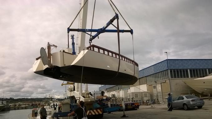 Nell'attesa che Amerigo venga dotato di albero e rig, pubblichiamo le prime foto dell'imbarcazione prese proprio durante le operazioni di varo.
