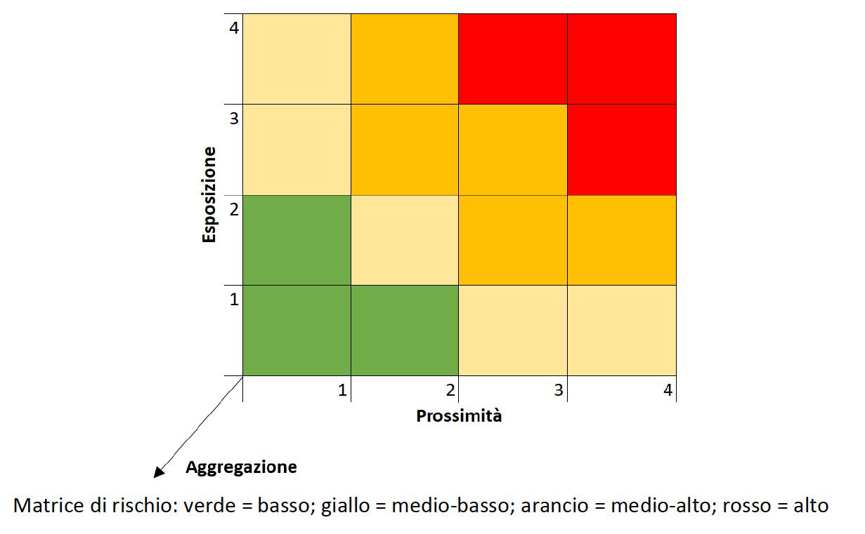 - Esposizione: la probabilità di venire in contatto con fonti di contagio