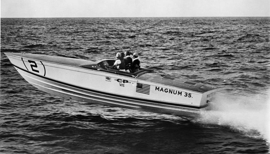 La storia di Magnum Marine era iniziata circa una trentina d’anni prima, a Miami, quando nel 1966 il geniale e controverso progettista Dan Aronow fondò il cantiere, specializzato nella produzione di barche tremendamente veloci: nel 1967 a bordo di un Magnum 27 divenne campione del mondo di motonautica. Già nel 1968 Aronow vendette il suo cantiere ad Apeco che nel 1969 trovò proprio nel marchese romano Filippo Theodoli, il proprio dealer Magnum per tutta Europa. Otto anni dopo ne divenne titolare.