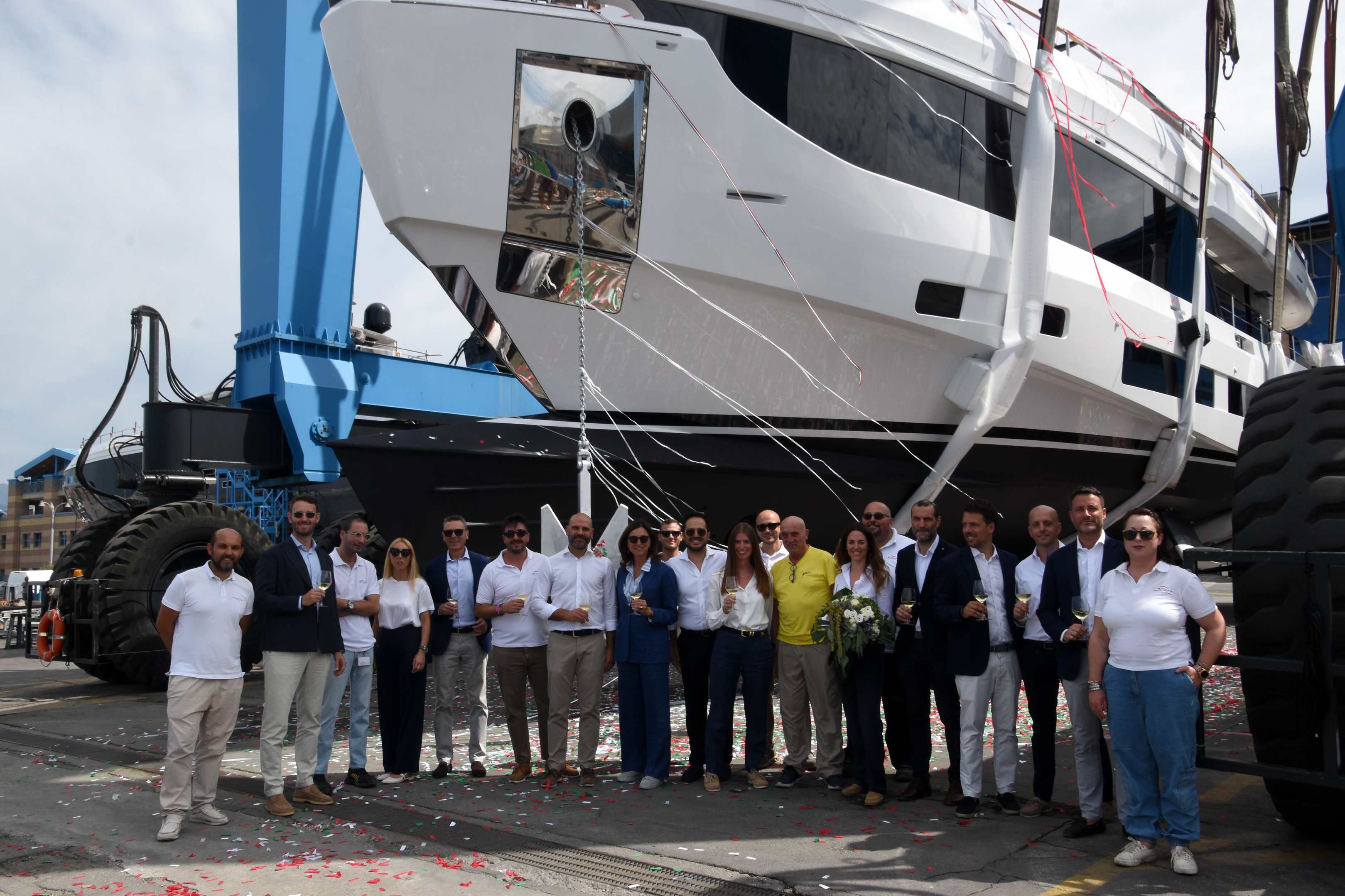 Viareggio - Al cantiere Lusben è stato varato il primo esemplare del nuovo Azimut Grande 30 metri che sarà esposto al Cannes Yachting Festival dal 9 al 14 settembre. Alla messa in acqua erano presenti i vertici di Azimut Benetti con la presidente Giovanna Vitelli, l'amministratore delegato Marco Valle e il general manager di Azimut, Andrea Antichi.