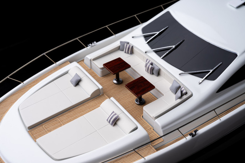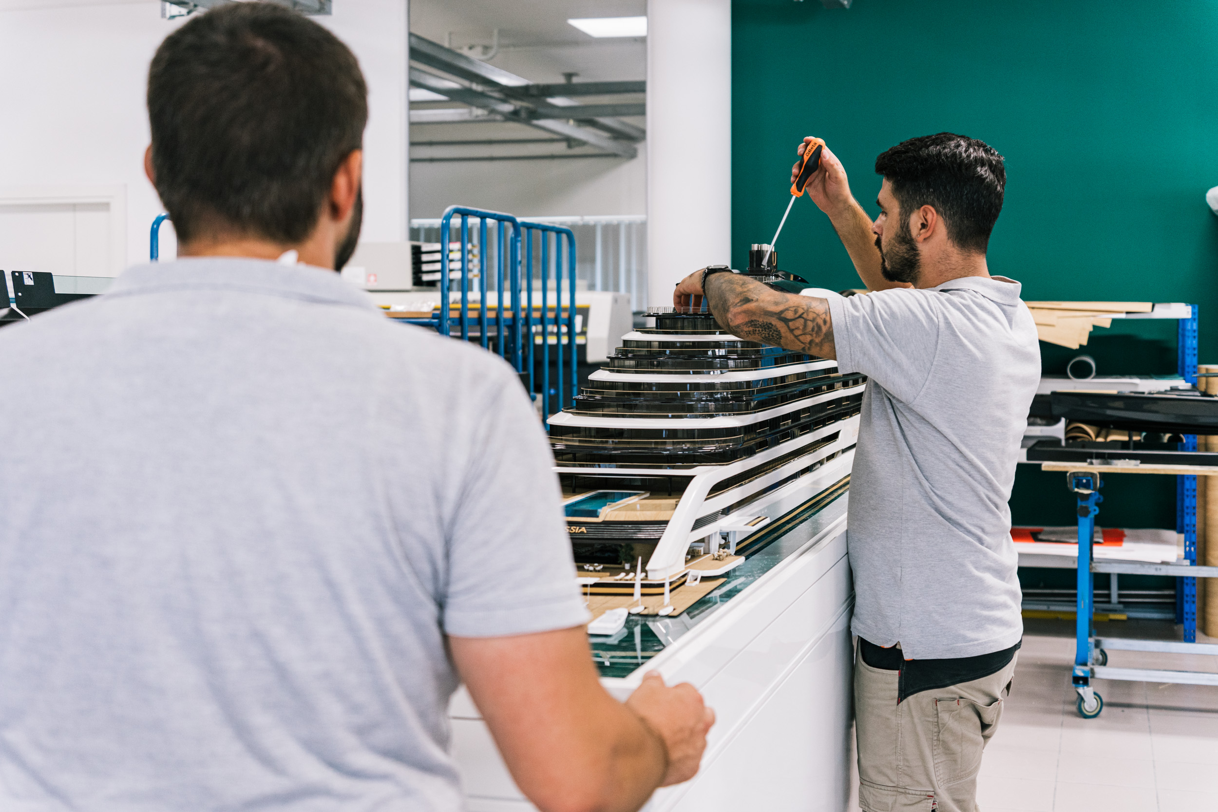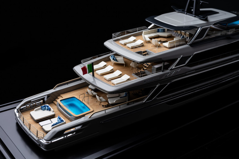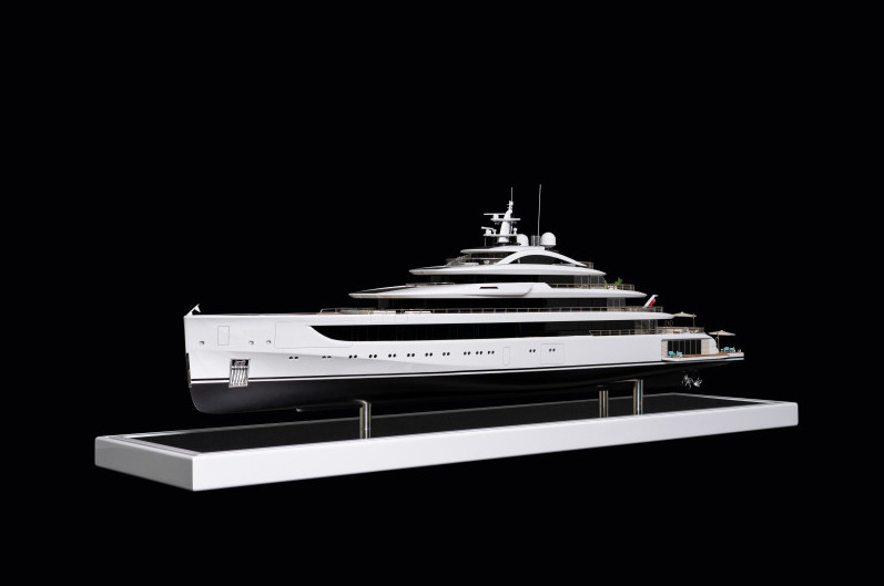 Sul grande, il riferimento è il Feadship Ulysses, circa 4 metri. Lì la scala era 1:100 su un progetto enorme, e lo scopo era trasmettere imponenza: far capire “quanto è bestiale” a colpo d’occhio.